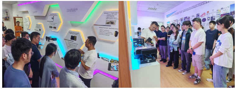 参观完展厅后,何宇翔工程师带领同学们走进维林光电的光电生产线参观。透过生产线的观察窗,同学们近距离观看了光电元器件的制造流程,了解了激光器等产品的关键制造环节,对光电器件的生产工艺、质量控制及技术创新有了更为直观的认识。