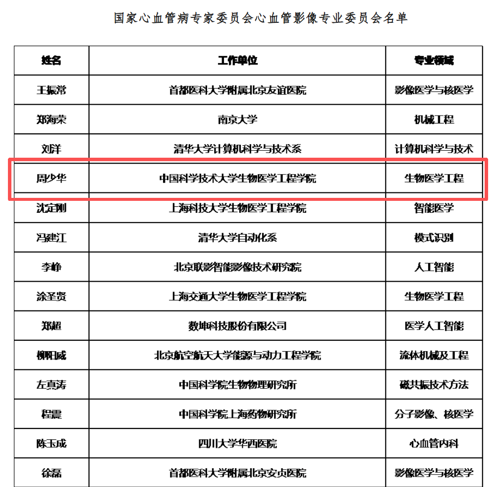 2025年9月27日上午,在中国心脏病大会(CHC)召开期间,国家心血管病专家委员会心血管影像专业委员会(以下简称影像专委会)正式成立,这是心血管影像领域发展历程中的一件里程碑事件。中国科学技术大学生物医学工程学院周少华教授凭借其在医学影像智能领域的卓越贡献和学术影响力,当选为第一届常务委员。